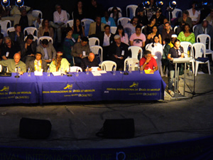 Esta carta es una necesidad, un mandato, una obligación del corazón. Me urge contarles que hoy lunes 23 de julio, al atardecer, llegué al Gran Hotel y al subir las escaleras del vestíbulo me asaltó un impulso súbito de llorar. En la recepción se arremolinaba un grupo de gente, todos querían ser atendidos de inmediato, busqué entre los rostros al menos uno que fuera conocido, uno que hubiera estado allí, que fuera testigo, uno por lo menos que llevara por dentro la misma música, que tuviera en la memoria algún verso o en sus ojos alguna parte de la escena que vivimos anoche como fantasmas de agua, embarrados y locos, casi eructando poemas después de seis horas de conjuro, gritando y aplaudiendo, finalmente trenzados auditorio y poetas, medusas de palabras tejiendo sus aparejos, cada vez más estrecho el círculo del abrazo final, remando juntos hacia otro tiempo, el escenario como un barco de náufragos que intentan intercambiarse el corazón para que no muera nadie, para que el mal pase de largo, para que no se quede.