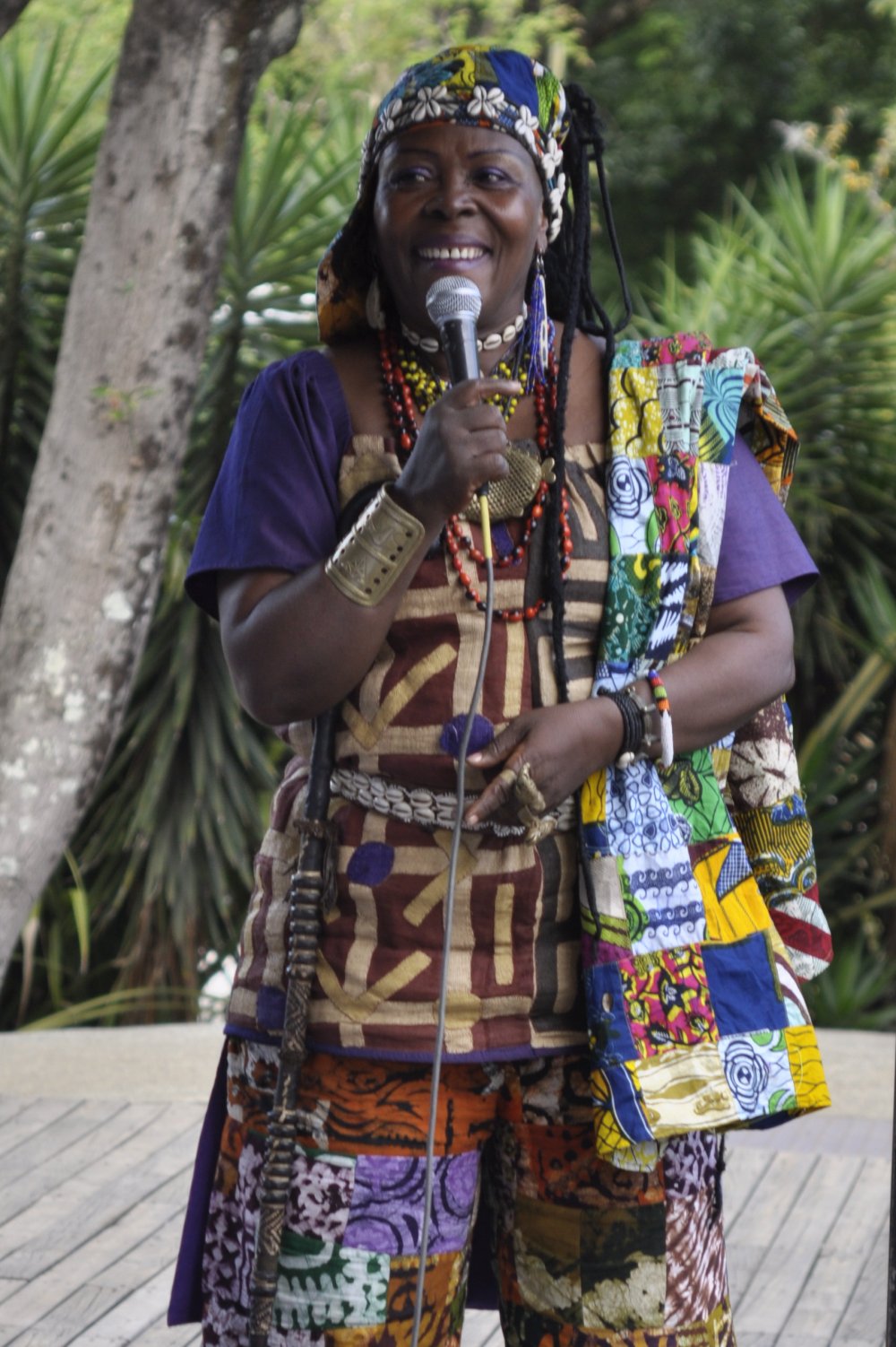 Werewere Liking nació en Bondé, Camerún, en 1950. Poeta, escritora, pintora, autodidacta, escultora y directora teatral. Interesada en la literatura tradicional y particularmente en los rituales de los Bassa, tribu del occidente africano. Posteriormene se radica en Costa de Marfil, interesándose por las culturas de Naki, Zaire y Nigeria. Entre sus publicaciones se encuentran: No razonar con el veneno; El Poder de Um; Cuentos de iniciaciones femeninas, Clásicos Africanos, Una Nueva Tierra: teatro ritual, Las nuevas ediciones africanas; El amor a través de cien vidas. Sus obras se expresan en una conjunción de géneros y explora rasgos estilísticos de las tradiciones orales: proverbios, canciones de cuna, cuentos alegóricos, leyendas y mitos. En torno a la capacidad transformadora de la poesía Werewere Linking nos dice:“Igual que una Kindack o « Señora de las recomendaciones » de mi cultura de origen, tendría yo tendencia a prescribir a nuestras sociedades actuales verdaderos baños de poesía, como este festival y otros de su género, para nutrir a todas nuestras familias y aliados con poesía. Embriagar nuestros amores y nuestras acciones de poesía para que la noche agite nuestro sueño y en el día se expandan nuestras percepciones y se consolide nuestra visión del «Árbol Dios».