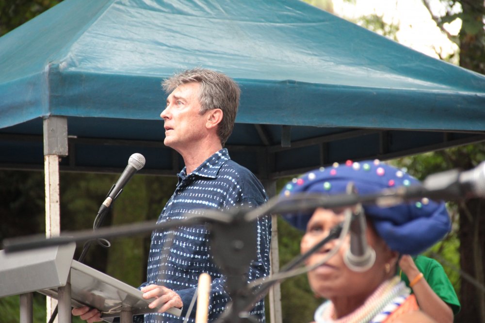 Vengo desde Durban en Sur África, llegar a Medellín tomó cerca de 24 horas. Pero aunque la distancia entre nuestros continentes es lejana, una vez África y América estuvieron unidas. Entonces hace 120 millones de años aproximadamente la tierra se rompió y derivó aparte. Así, en nombre de mi organización el Centro para las Artes Creativas, con asiento en la Universidad de KwaZulu-Natal en Durban, y en nombre de nuestro festival Poetry Africa, y en nombre de los poetas que vienen de África, yo digo que éste es un buen momento para fortalecer de nuevo la conexión entre nuestros continentes. A los colegas de los festivales de poesía les digo también que este encuentro facilitado por Fernando y su equipo, es una destacada oportunidad para fortalecer el intercambio y la cooperación entre los festivales de poesía del globo.